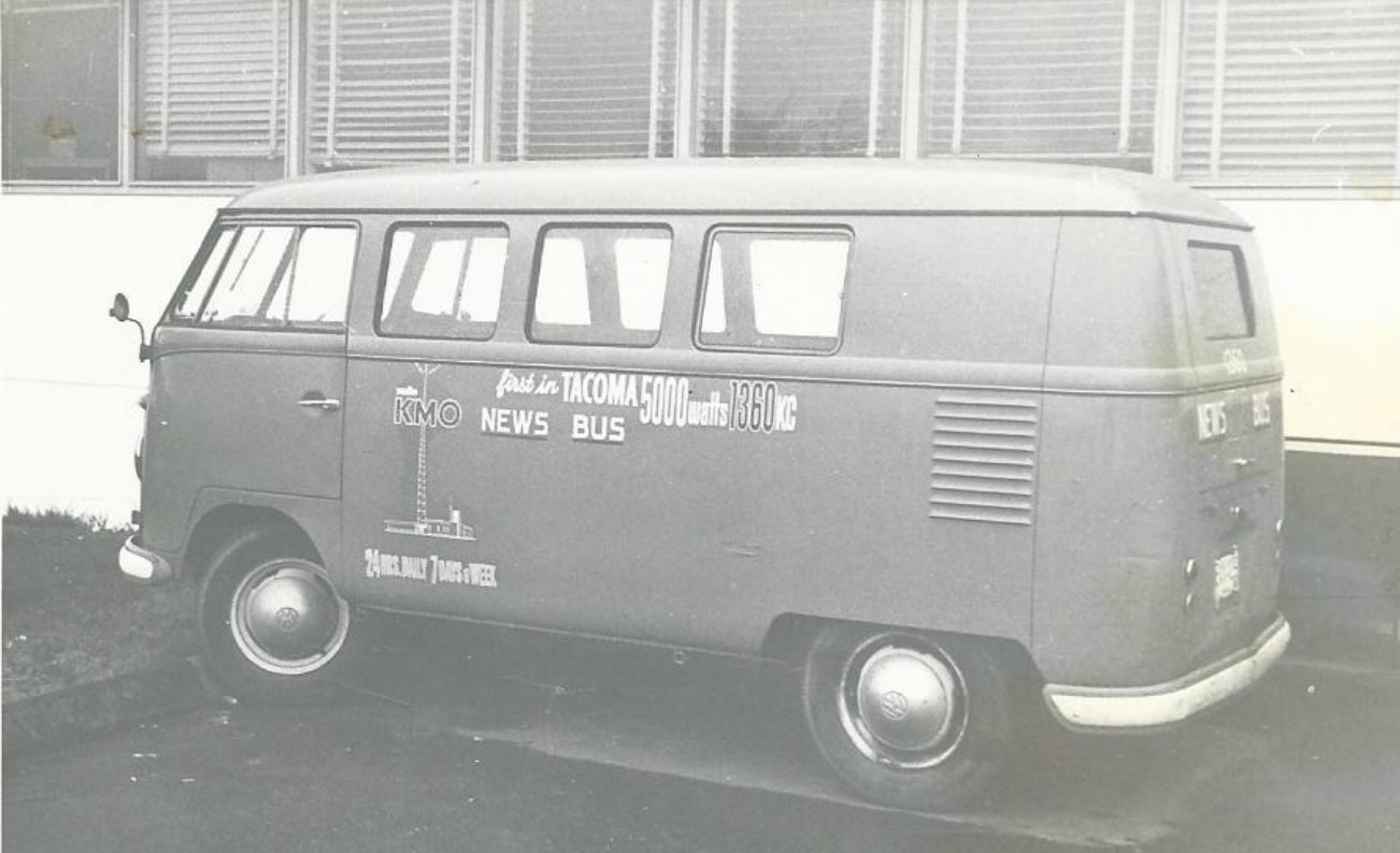 William Engelhardt sent along this pic of the KMO News van (1966) with the comment: It was not a nice ride.