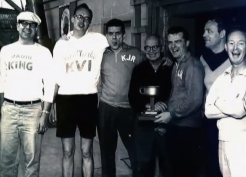 A couple of things you need to know about the video. It’s 16:50 long, the sound starts a few seconds in, the first half is a collection of photos from Frostys early days at KING with audio from a special LP that was produced by his friends at KING for his retirement. It includes a clip of frosty jumping out of an airplane and a rare wire recording of the Space Needle “earthquake” event and much more. The final 4 1/2 minutes contains photos from KGNW, Frostys radio luncheons, final broadcast on KGNW and other gathering photos with audio of Frosty that I am sure will bring back great memories of Frostys sparkle and whit. Turn up the volume!