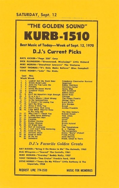 KURB 1510 music survey from 1970. https://qzvx.com/wp-content/uploads/2021/11/KURB-1510-1970musicsurvey.jpg