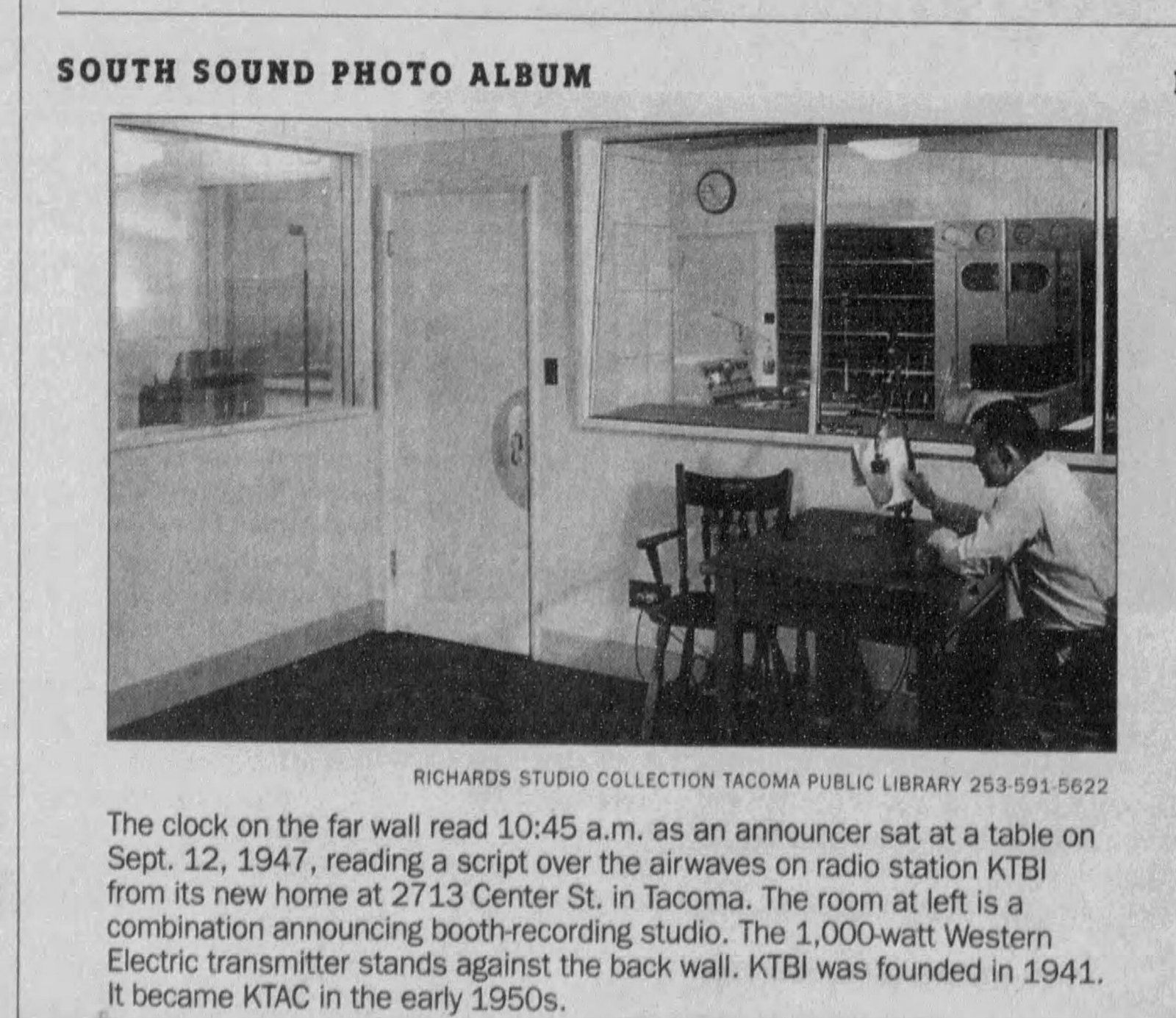 Photo: KTBI Studio 1947 Jason Remington January 30, 2023 (TNT) Share this post: Jason RemingtonAdmin/Editor | Airchecks KTOY (WA) | KVAC (WA) | KDFL (WA) | KONP (WA) | KBAM (WA) | KJUN (WA) | KRPM (WA) | KAMT (WA) | KASY (WA) | KBRD (WA) | KTAC (WA) | KMTT (WA) | KOOL (AZ)