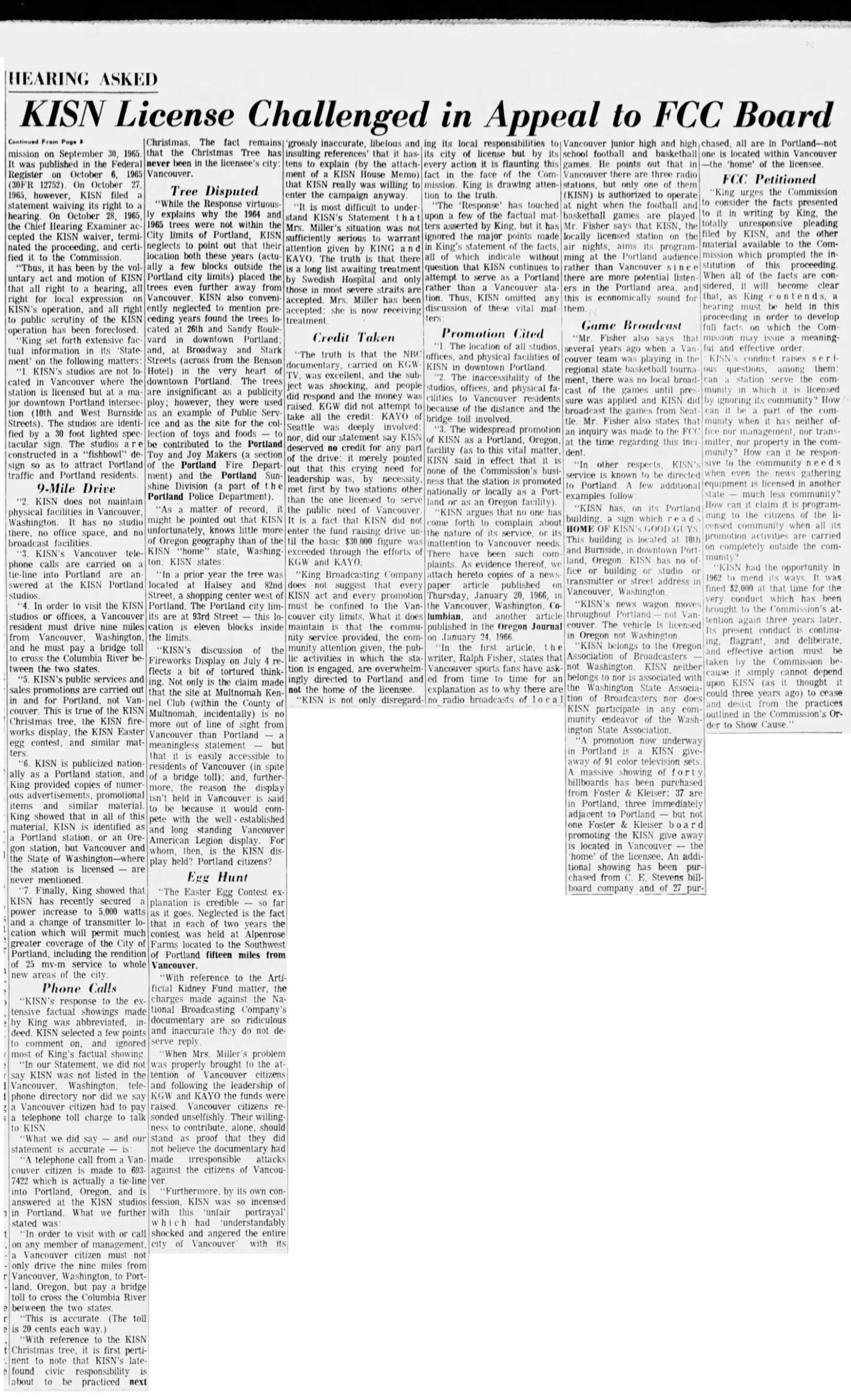 1966: KING Broadcasting challenges the license of KISN Vancouver Jason Remington November 3, 2024 Also see: Don Burden – Radio Stardom, Stormy End APRIL 1966–Vancouver Columbian Click picture to ENLARGE Share this post: Jason RemingtonAdmin/Editor | Airchecks KTOY (WA) | KVAC (WA) | KDFL (WA) | KONP (WA) | KBAM (WA) | KJUN (WA) | KRPM (WA) | KAMT (WA) | KASY (WA) | KBRD (WA) | KTAC (WA) | KMTT (WA) | KOOL (AZ)