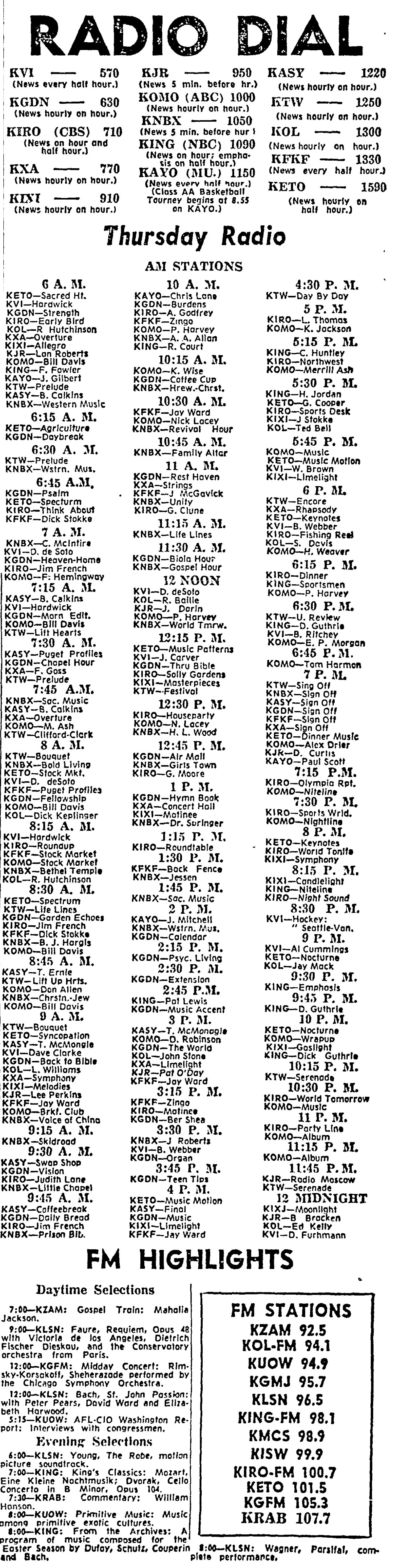 1963 (P-I) April Radio Jason Remington November 26, 2024 April 11, 1963 Share this post: Jason Remington(((Admin/Editor | Airchecks | CONTACT))) KTOY (WA) | KVAC (WA) | KDFL (WA) | KONP (WA) | KBAM (WA) | KJUN (WA) | KRPM (WA) | KAMT (WA) | KASY (WA) | KBRD (WA) | KTAC (WA) | KMTT (WA) | KOOL (AZ)