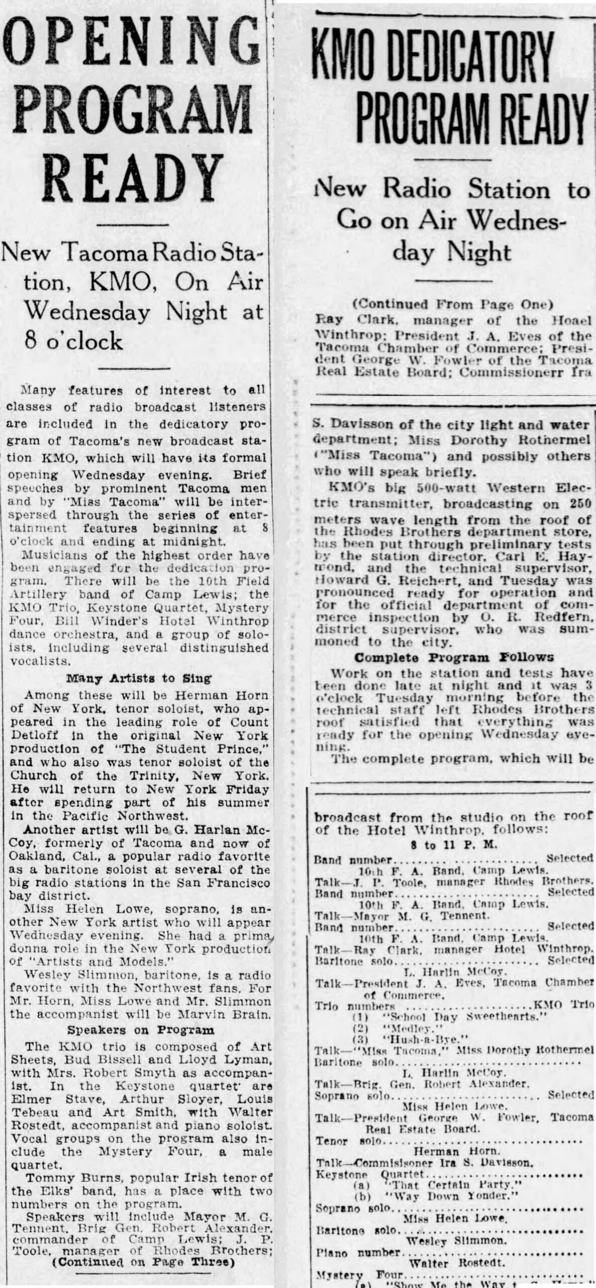 1926 – KMO Tacoma goes on the air Jason Remington November 27, 2024 August 1926 Share this post: Jason RemingtonAdmin/Editor | Airchecks KTOY (WA) | KVAC (WA) | KDFL (WA) | KONP (WA) | KBAM (WA) | KJUN (WA) | KRPM (WA) | KAMT (WA) | KASY (WA) | KBRD (WA) | KTAC (WA) | KMTT (WA) | KOOL (AZ)