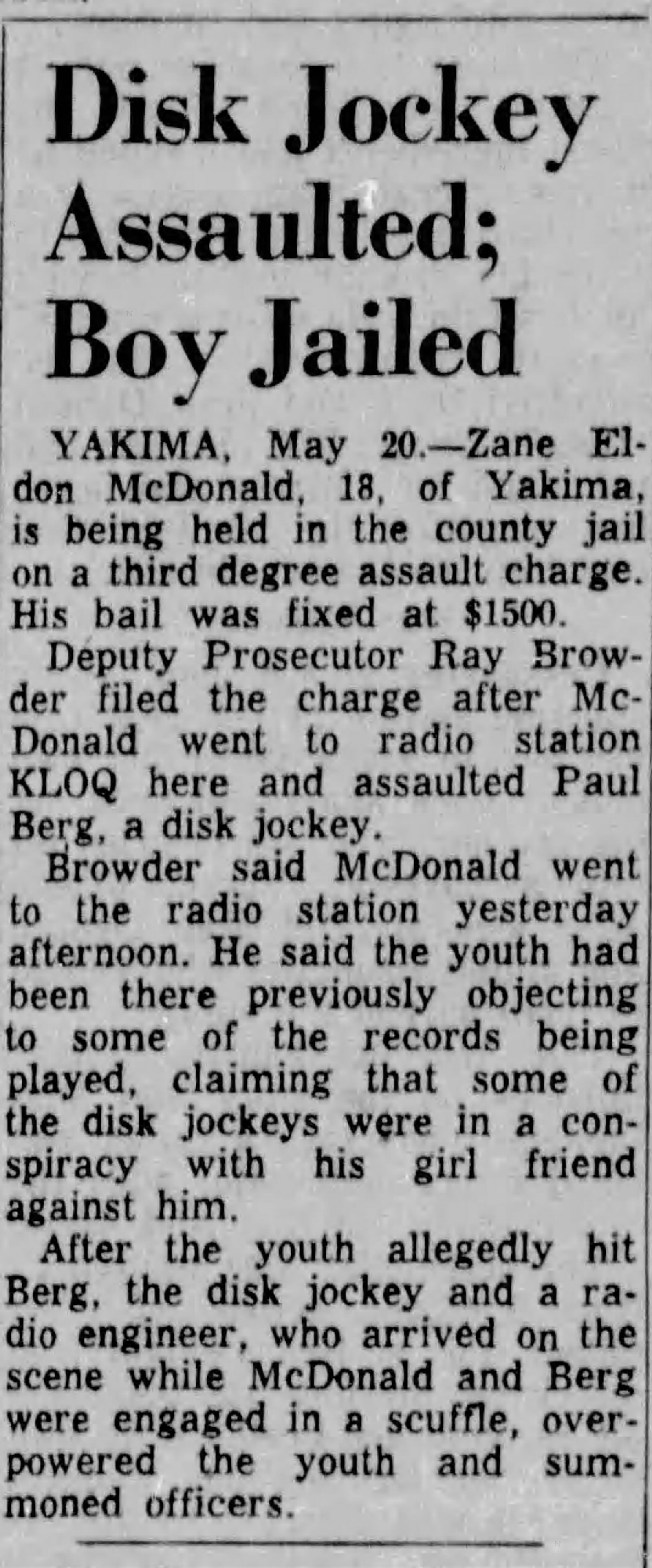 One night at KAYO, a couple of Indians phoned and wanted to hear a nice Indian song so I played Red Wing, an old standard praising an Indian girl by that name. Wrong song – the same guys called back and said they were going to be outside when I got off work at 2:00 A.M. and beat me up. I called SPD and they told me if someone was going to do that they wouldn’t call first, so relax, so I did and lived to tell about it.
