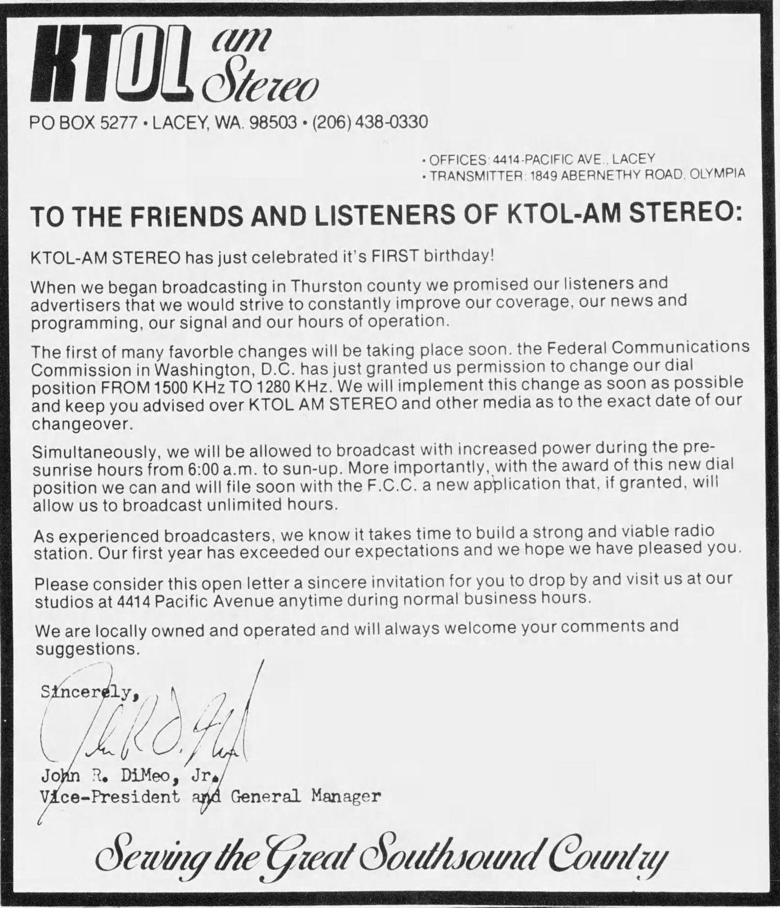 Seems like 1500 would’ve been a better frequency. 1280 was and is crowded at night with KIT Yakima and several others on it. What else was on 1500? KSTP in St Paul MN? KGA bleed over from 1510?