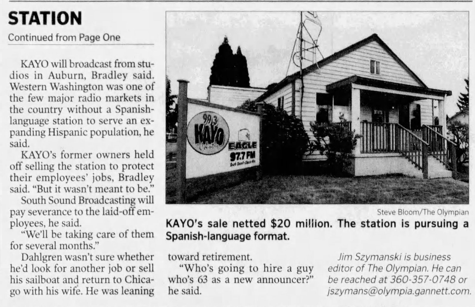 1 thought on “Olympia’s 99.3 KAYO sold to Bustos Media (2005)