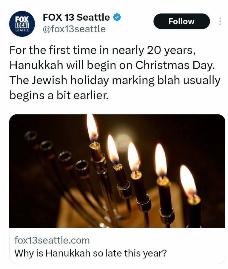 Apparently, blah is a filler or placeholder while the editor researched what Hannukah was all about. But, something sparkly, or maybe a squirrel caught his eye and threw him off track. He hit ENTER and this happened.