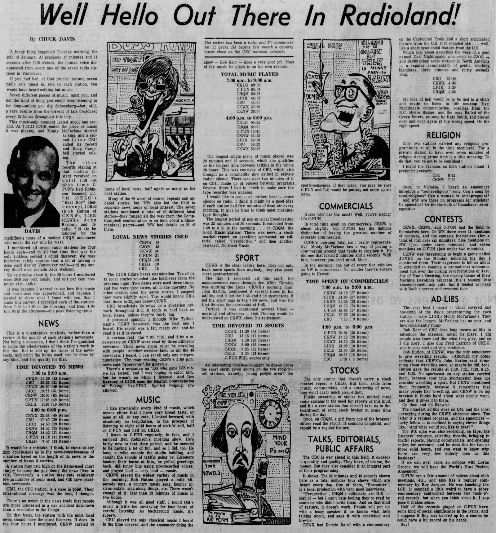 Vancouver Sun columnist monitors 7 radio stations for a day in 1967