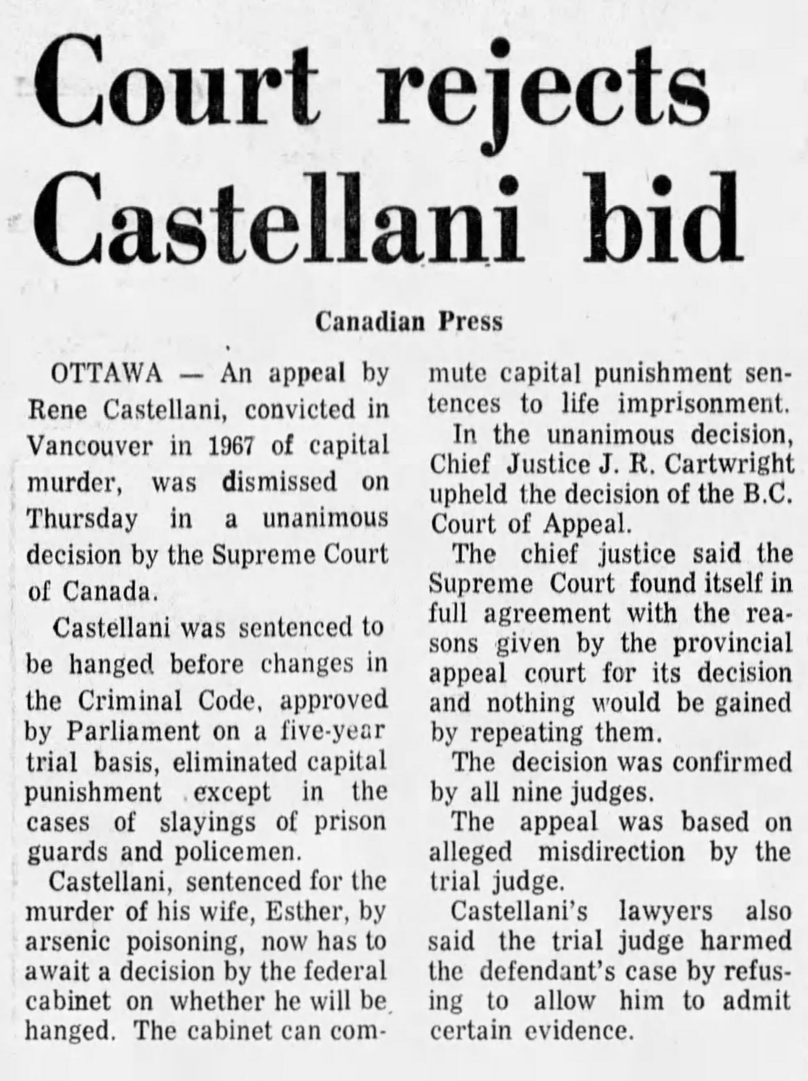 November 1969–Appeal Dismissed (The Province)