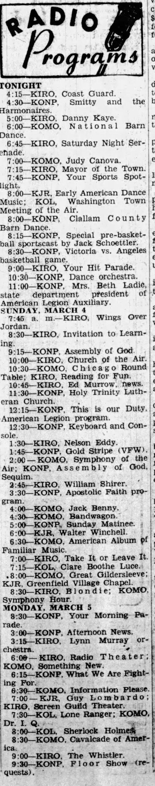 2 thoughts on “80 Years for KONP/Port Angeles; Dedicatory program listings; Unique antenna & ground system; Nationwide DX’ers report KONP reception