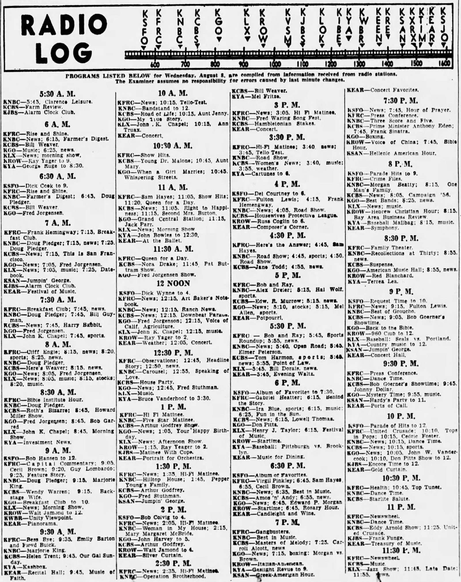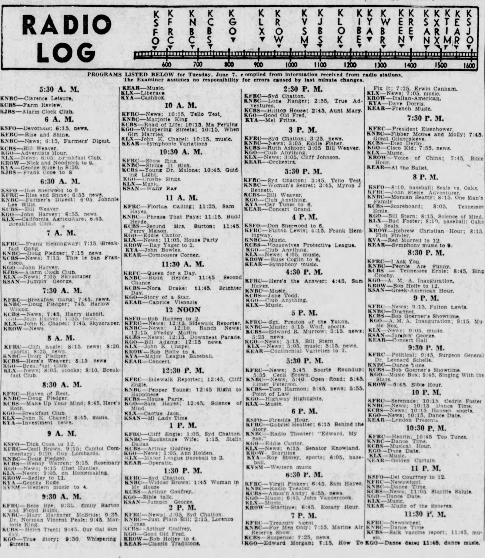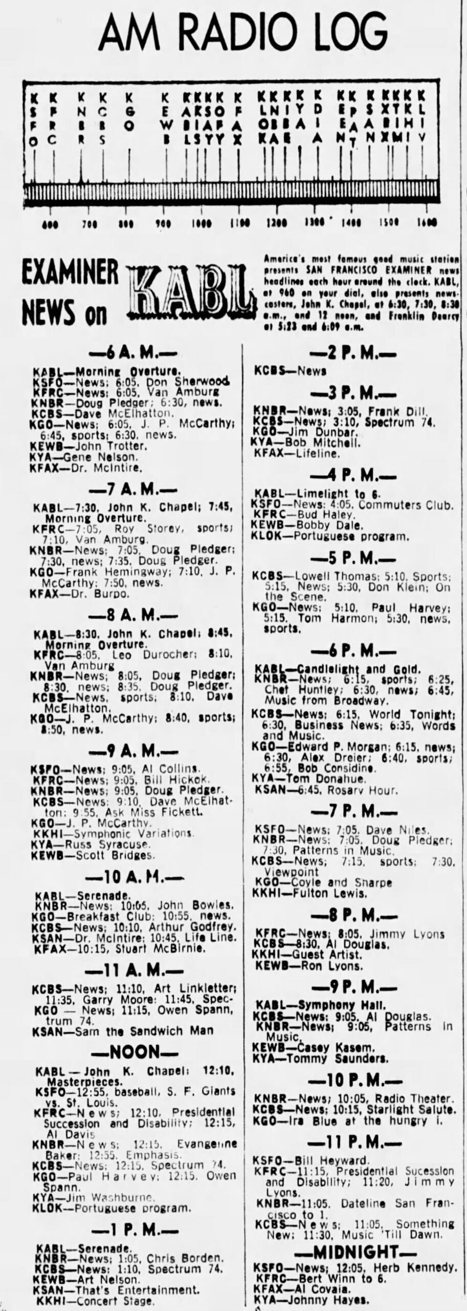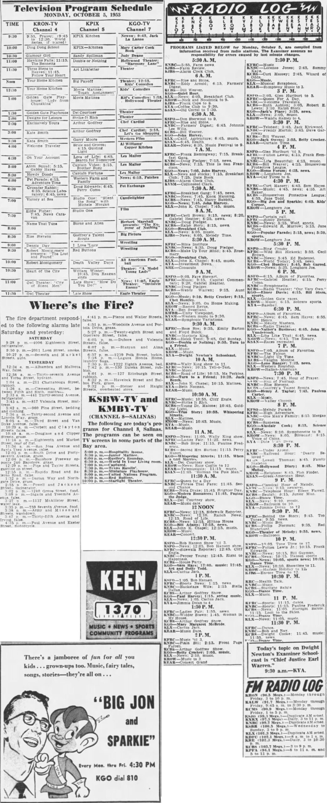San Francisco (Examiner) Radio Listings 1953-1956, 1964-1965 Jason Remington February 8, 2025 Oct 5 1953 Aug 6 1954 Jun 7 1955 Aug 8 1958 Jun 8 1964 Jul 7 1965 Share this post: Jason Remington(((Admin/Editor | Airchecks | CONTACT))) KTOY (WA) | KVAC (WA) | KDFL (WA) | KONP (WA) | KBAM (WA) | KJUN (WA) | KRPM (WA) | KAMT (WA) | KASY (WA) | KBRD (WA) | KTAC (WA) | KMTT (WA) | KOOL (AZ)
