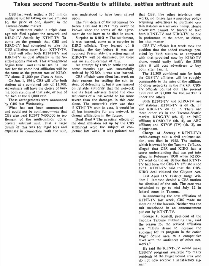 (By the way, I remember at age 5 or 6 flipping the dial and seeing the CBS shows on both stations. If we had lived farther north than Seattle’s U District at the time, perhaps I could have flipped the dial a little more and seen the CBS shows on a third station — KVOS 12 in Bellingham.)