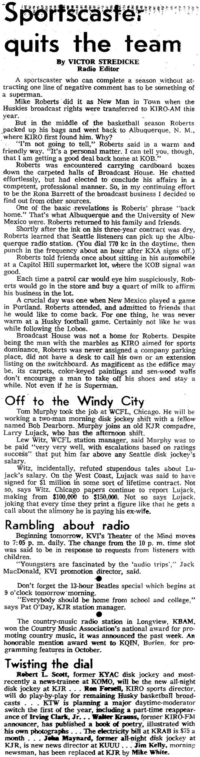 No warm fuzzies at 710 KIRO for KOB sportscaster Victor Stredicke February 22, 2025 December 1972 Share this post: Victor StredickeFormer RADIO columnist at the Seattle Times.