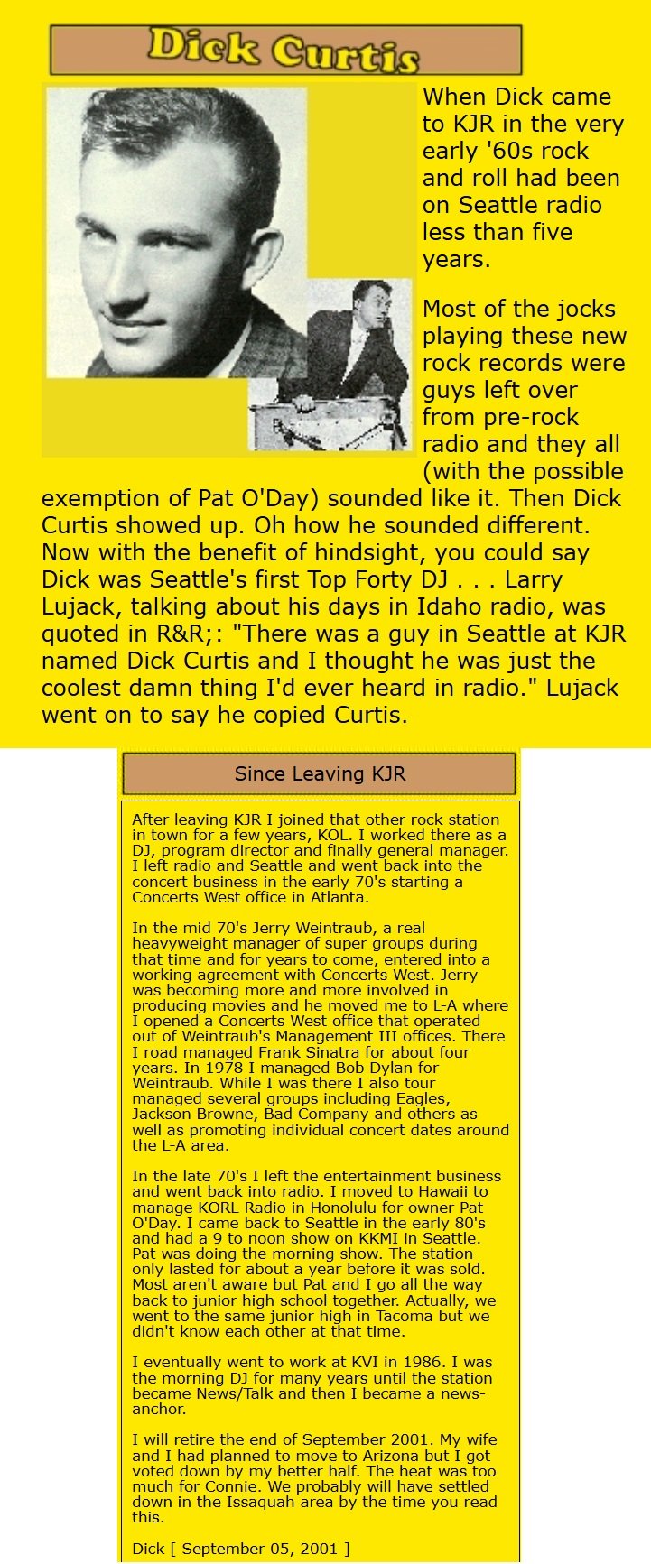 Robert L grew up a big fan of KJR in fact while attending Rainier Beach High School he would tell friends and visiting disc jockies that he would, some day, work at KJR radio.