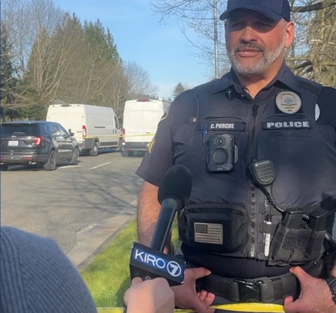 Great reporting by KIRO 7 reporter Samantha Lomibao, seen here interviewing a cop that looks like a dman cop should. Busy local news day for KIRO 7.