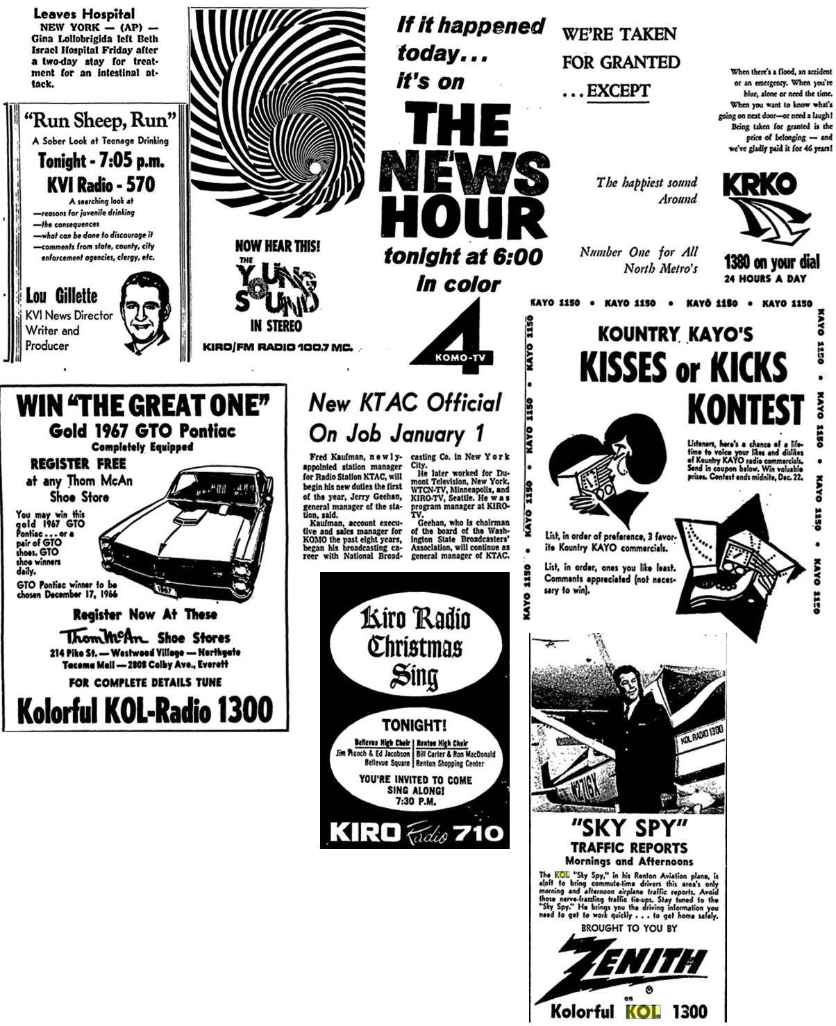 December 1966 radio ads (Seattle P-I) Victor Stredicke June 1, 2025 Share this post: Victor StredickeFormer RADIO columnist at the Seattle Times.