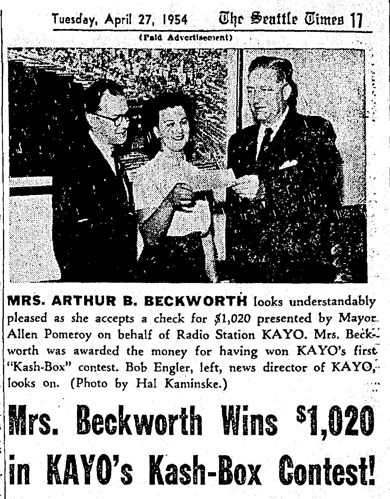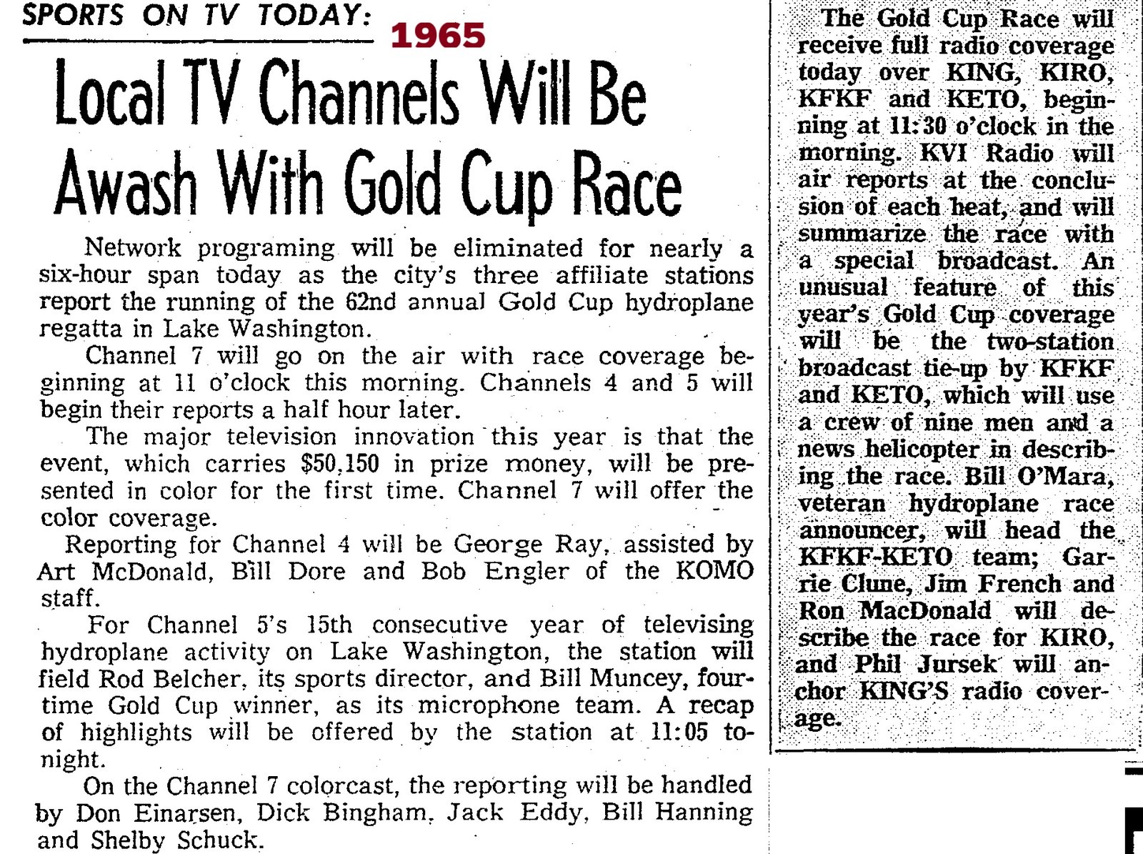 In later years, though he may have remained with KOMO 4, as Seattle papers show he was also announcing at Longacres, college sports, hydros, Golden Gloves boxing along with Stan Naccarato, Ted Bell and Morrie Alhadeff, as late as 1975.