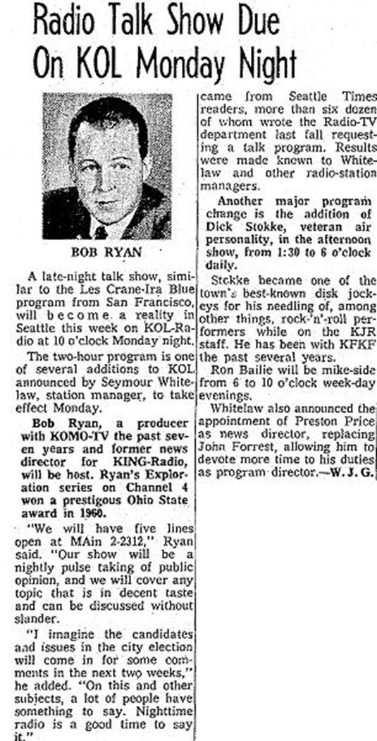 Bob Ryan’s KOL talk show Jason Remington August 26, 2025 Share this post: Jason RemingtonAdmin/Editor | Airchecks KTOY (WA) | KVAC (WA) | KDFL (WA) | KONP (WA) | KBAM (WA) | KJUN (WA) | KRPM (WA) | KAMT (WA) | KASY (WA) | KBRD (WA) | KTAC (WA) | KMTT (WA) | KOOL (AZ)