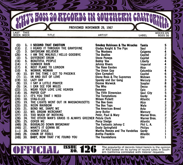 KHJ Survey from this week in 1967 Jason Remington November 30, 2025 Share this post: Jason RemingtonAdmin/Editor | Airchecks KTOY (WA) | KVAC (WA) | KDFL (WA) | KONP (WA) | KBAM (WA) | KJUN (WA) | KRPM (WA) | KAMT (WA) | KASY (WA) | KBRD (WA) | KTAC (WA) | KMTT (WA) | KOOL (AZ)