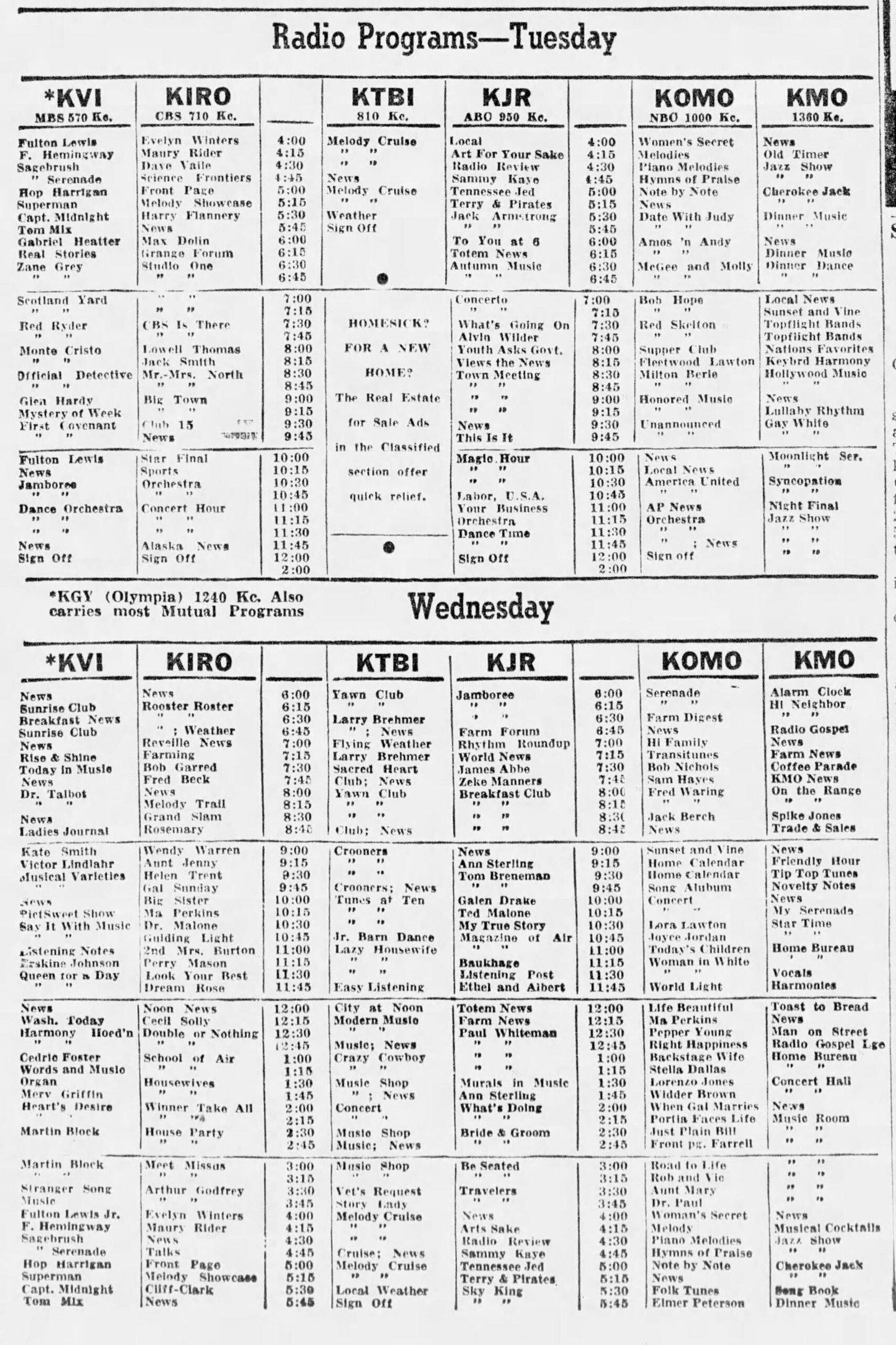 October 14, 1947 Tacoma radio listings Jason Remington January 26, 2026 Tacoma News Tribune Share this post: Jason RemingtonAdmin/Editor | Airchecks KTOY (WA) | KVAC (WA) | KDFL (WA) | KONP (WA) | KBAM (WA) | KJUN (WA) | KRPM (WA) | KAMT (WA) | KASY (WA) | KBRD (WA) | KTAC (WA) | KMTT (WA) | KOOL (AZ)