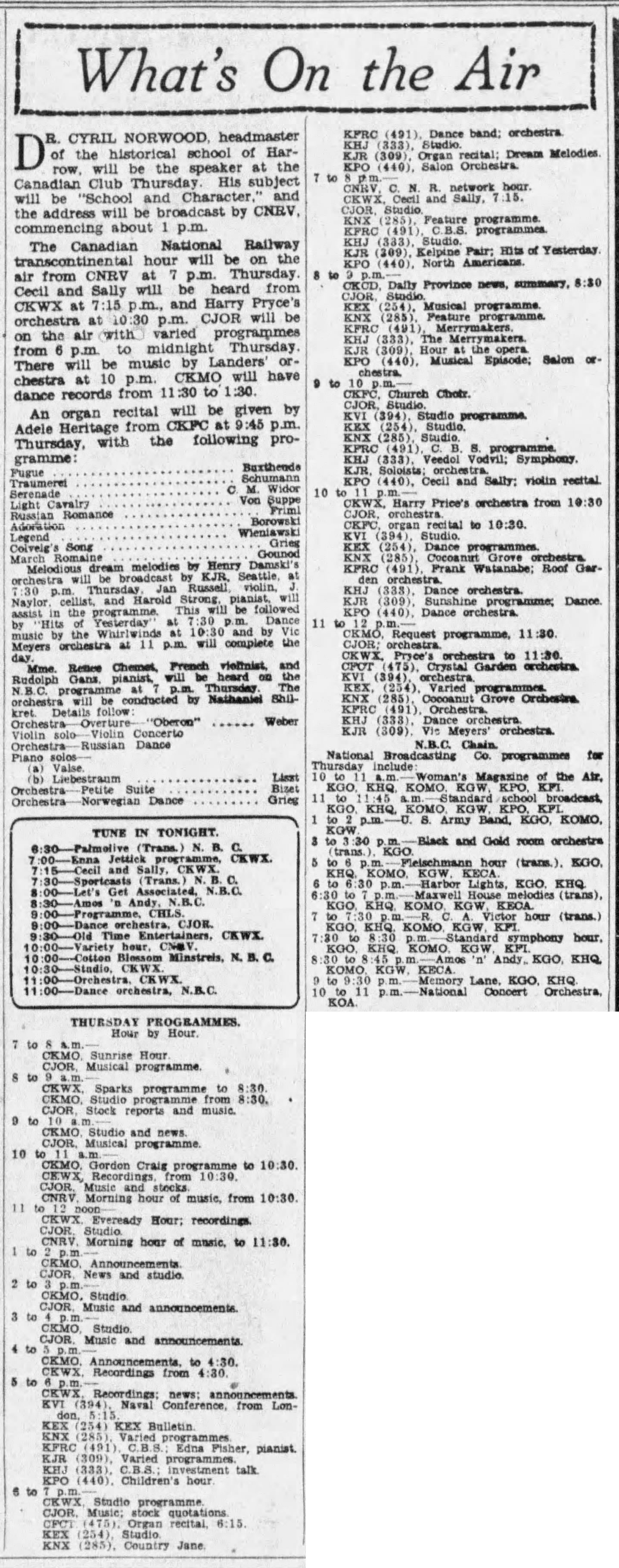 1930 (Vancouver, B.C.) radio listings April, 23 Jason Remington February 14, 2026 The Province – April 23, 1930 Share this post: Jason Remington(((Admin/Editor | Airchecks | CONTACT))) KTOY (WA) | KVAC (WA) | KDFL (WA) | KONP (WA) | KBAM (WA) | KJUN (WA) | KRPM (WA) | KAMT (WA) | KASY (WA) | KBRD (WA) | KTAC (WA) | KMTT (WA) | KOOL (AZ)