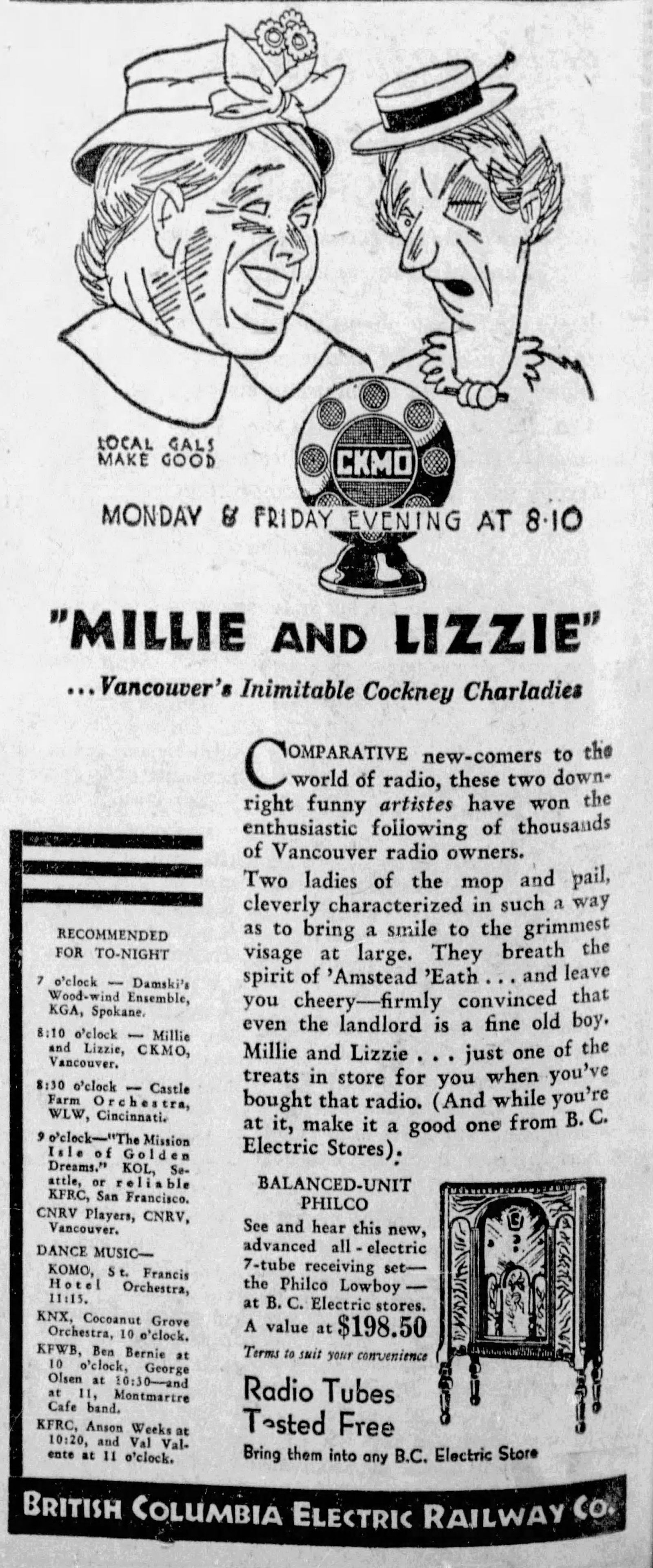 Classic CKMO ad from 1930 – Vancouver Sun