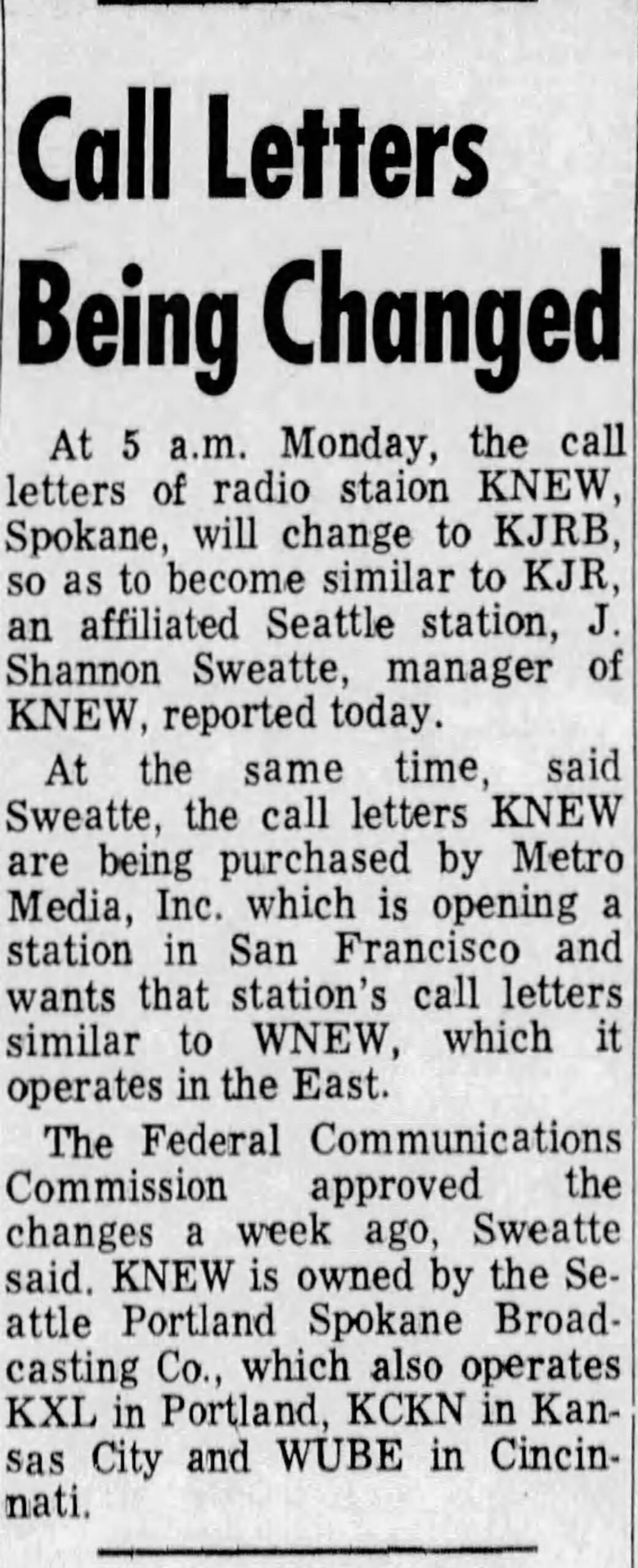 KNEW becomes KJRB Jason Remington February 22, 2026 July 14, 1966-Spokane Spokeman-Review Share this post: Jason Remington(((Admin/Editor | Airchecks | CONTACT))) KTOY (WA) | KVAC (WA) | KDFL (WA) | KONP (WA) | KBAM (WA) | KJUN (WA) | KRPM (WA) | KAMT (WA) | KASY (WA) | KBRD (WA) | KTAC (WA) | KMTT (WA) | KOOL (AZ)