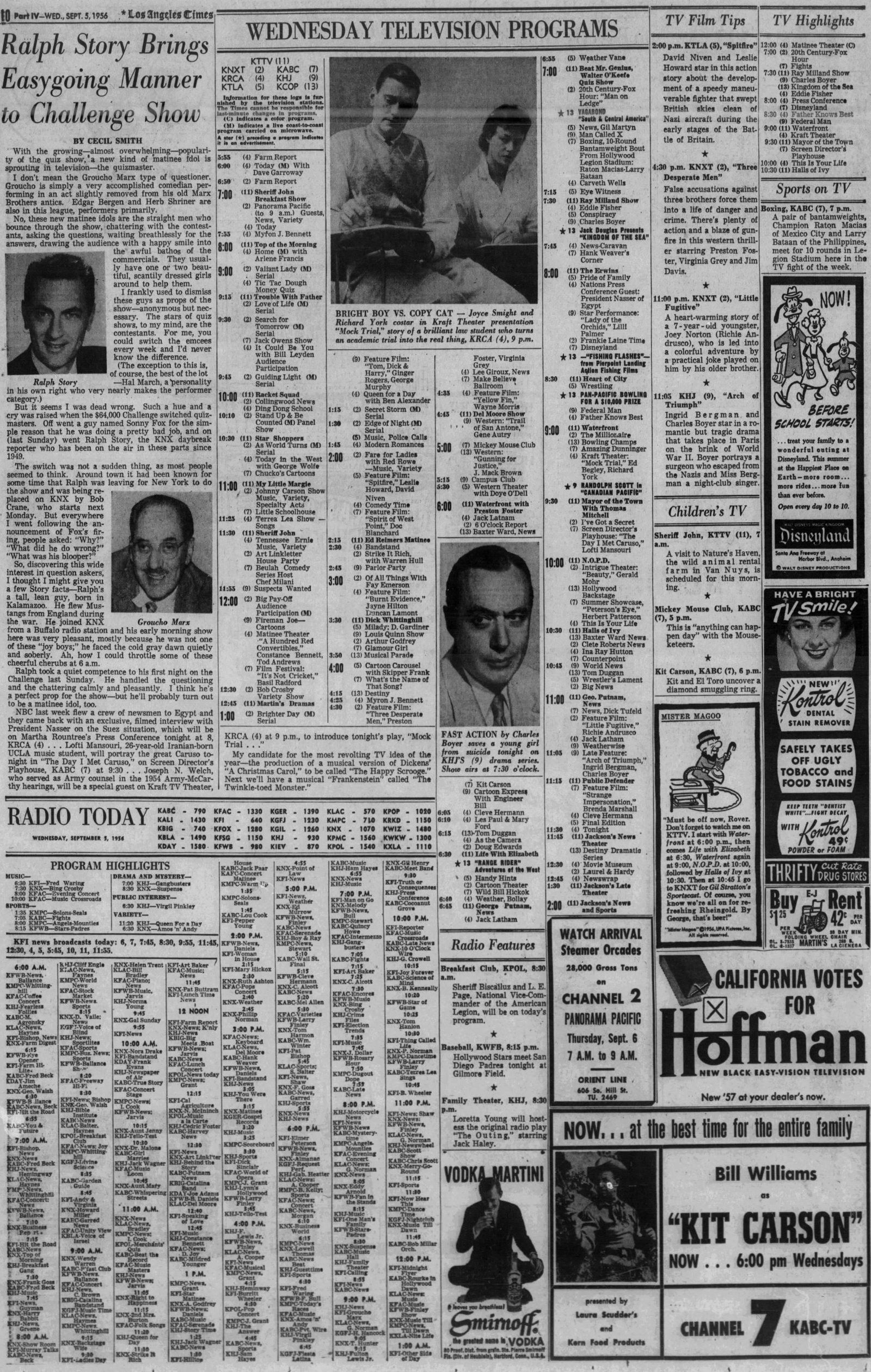 BOB CRANE started at KNX on September 10, 1956, replacing Ralph Story.