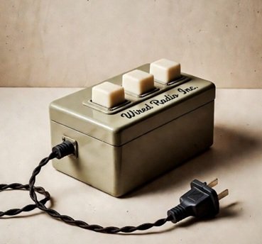 These plans, said Hough, are the result of three years of experimentation by a staff of radio engineers working in Washington, Cleveland, Staten Island and New Jersey. Hough said it was but a short time before the American public would have a de luxe radio service over electric lighting wires at a cost of around $2 per month. In describing the type of instrument which will be used in this new service, he said: “We shall eventually give the American people a small box with nothing on it but three push buttons and a silk cord. They’ll plug the cord into any lamp socket, push a button and out will come a program feature either through head phones or loud speaker.”