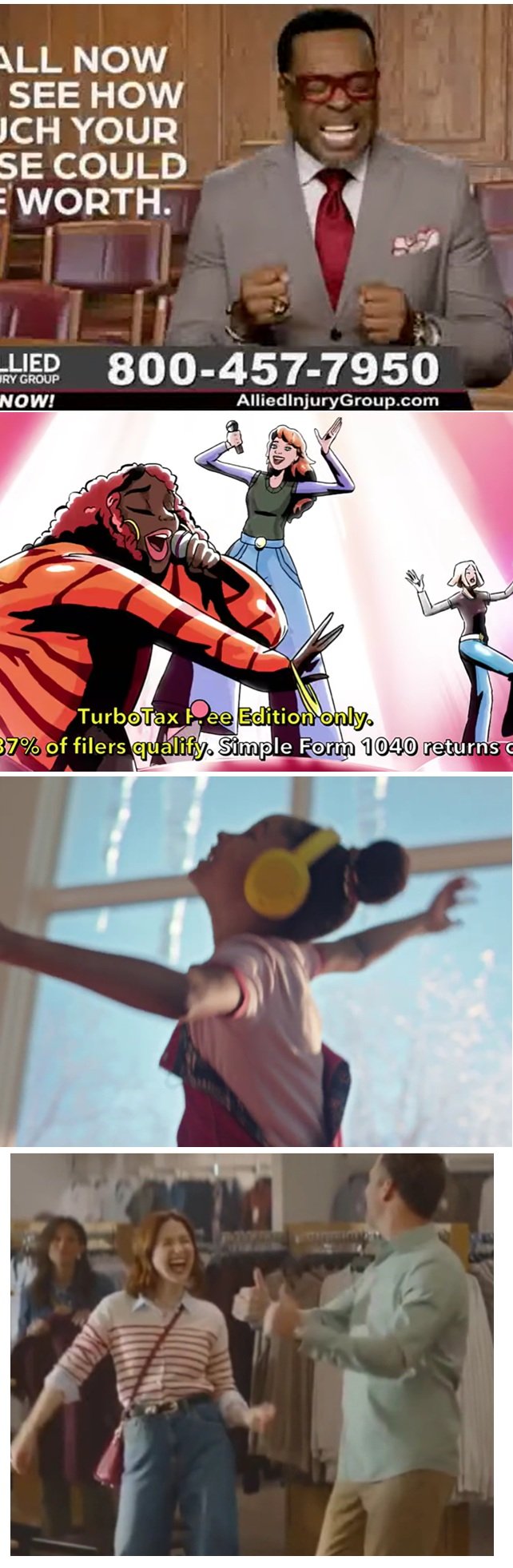 The most annoying TV commercials always seem to hit during daytime TV while I’m at the gym. My gym has two full rows of screens, all tuned to different channels, yet somehow they’re all running the exact same irritating ads. And in nearly every single one, people are dancing. Full-on, over-the-top dancing with pure, ridiculous HAPPINESS.From an online tax service to Ozempic injections — these products supposedly make people so ecstatic that they can’t help but break into spontaneous dance routines.